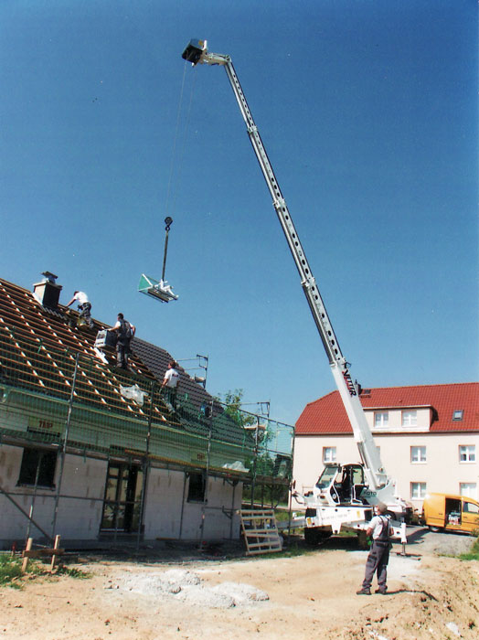 Einsatz der Hebebühne zur nachträglichen Montage einer Solaranlage